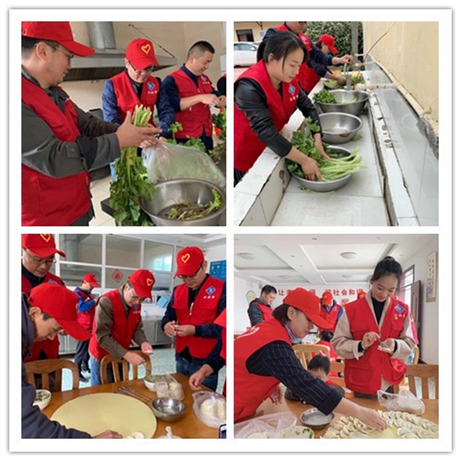 大家剛到敬老院放下為老人帶來的食用油、牛奶、豆奶粉、餅干等食品后就立即分組忙碌起來。有的洗菜、切菜、做餃子餡、包餃子;有的為老人表演節(jié)目、陪老人聊天;工程管理專業(yè)的志愿者幫助老人檢修房屋……原本沉寂的敬老院頓時(shí)熱鬧了起來。