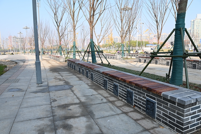 此次針對(duì)蘇州公園東北角處進(jìn)行重新栽植18株20CM的彩葉樹種的櫸樹和日本矮麥冬進(jìn)行栽植,同時(shí)為迎合蘇州街西入口整體景觀效果相協(xié)調(diào),增加更具“蘇式”韻味景觀長(zhǎng)條形式的坐凳滿足周圍居民生活休閑。