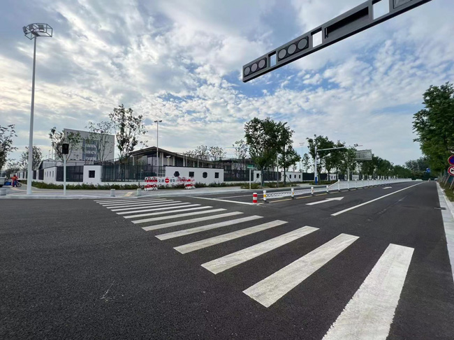 本次工程累計安裝隔離護(hù)欄1236米,警示柱12套,震蕩標(biāo)線713平米,夜間自發(fā)光三角警示牌19套,停車場指示牌2套,可拆卸防撞柱10套,臨時封閉移動護(hù)欄100m。
